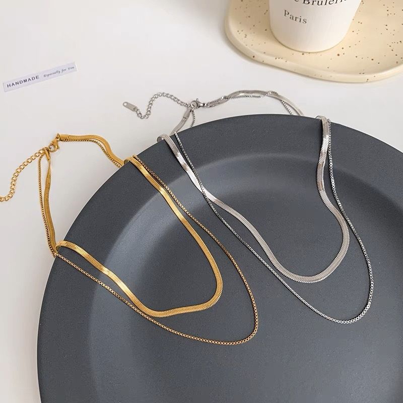 Coliere cu lanț de șarpe multistrat pentru femei, culoare aurie, tip herringbone, claviculă, lanțuri 2024 la modă