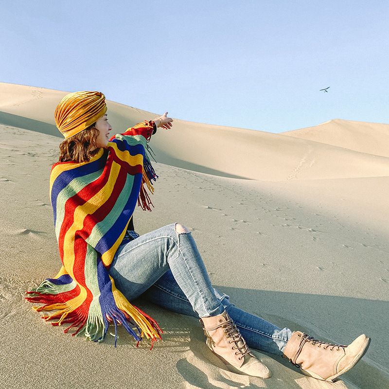 Colorful long tassel cape, wide striped pullover sweater, warm and windproof cape, Northwest Yunnan tourism photo
