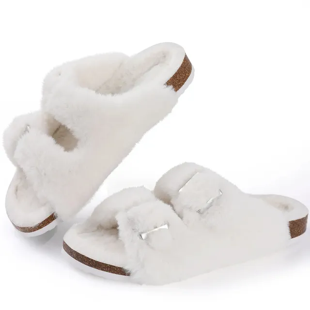 Comwarm Women`s Fur Cork Suede Clogs Fuzzy Cork Footbed Mules Men Fashion Suede Flats Slippers Slip On Winter Potato Shoes