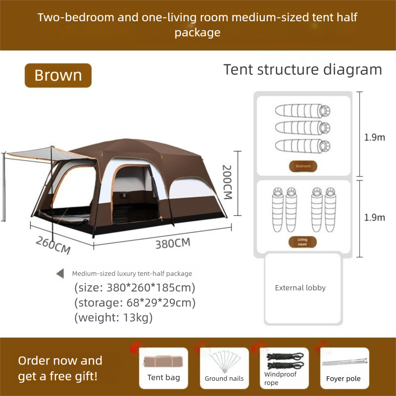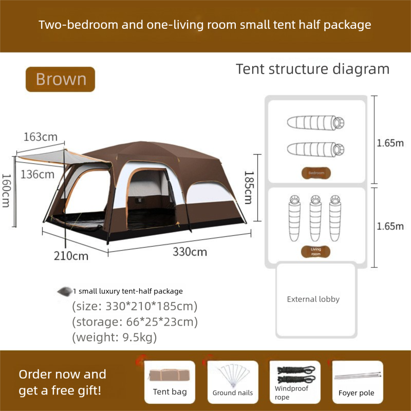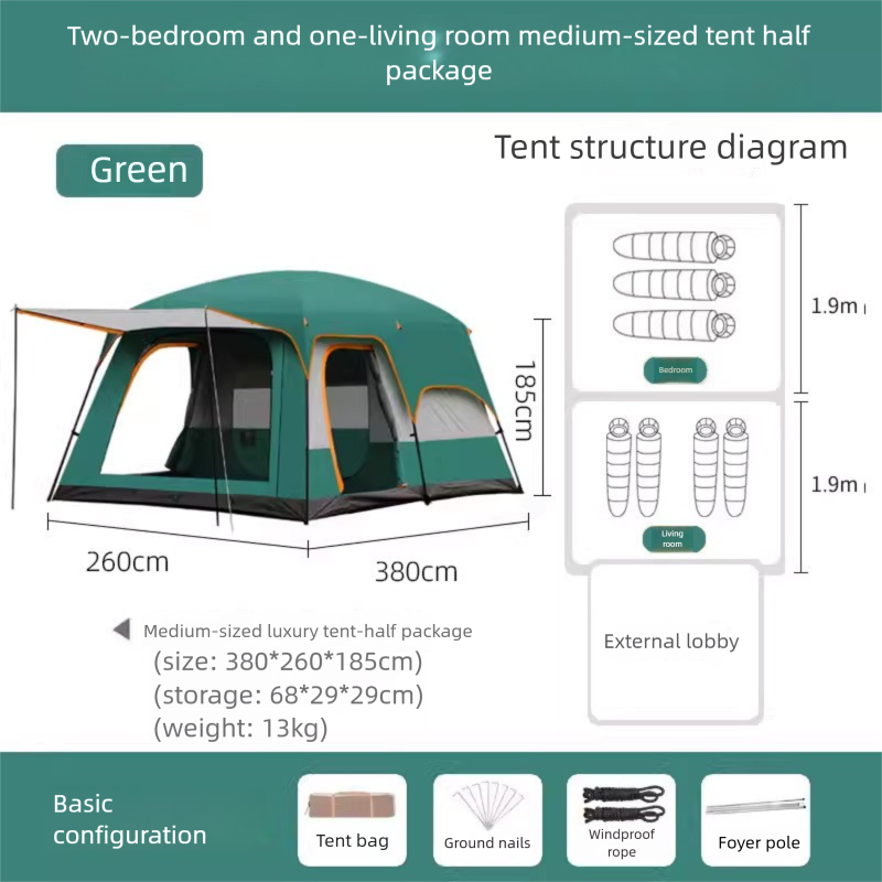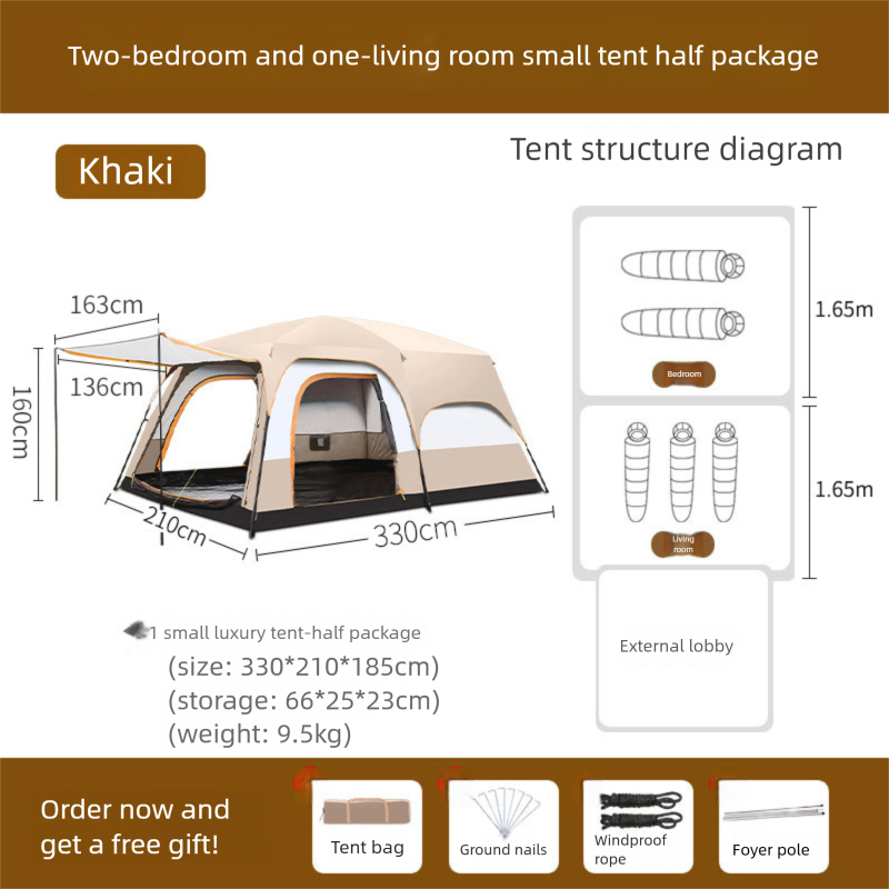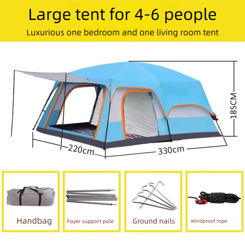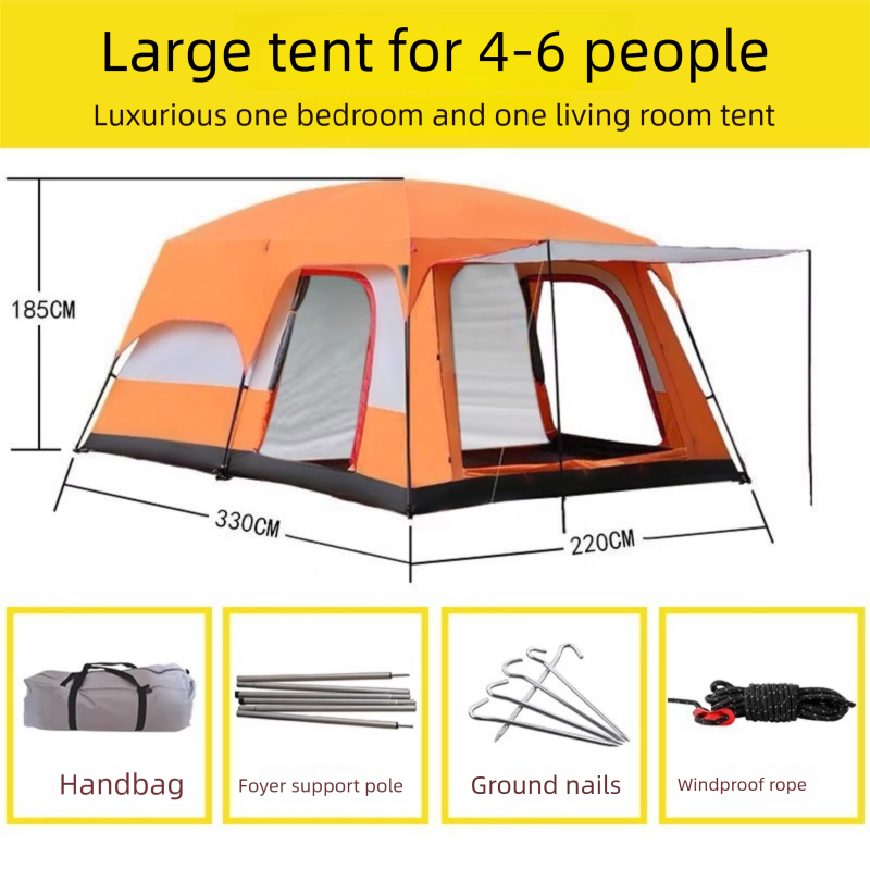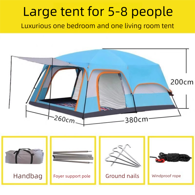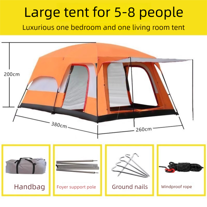 2-Room 1-Living Room Large Camping Tent For Multiple People, Thickened Windproof Rainproof Waterproof Foldable Portable Tent For Outdoor Camping