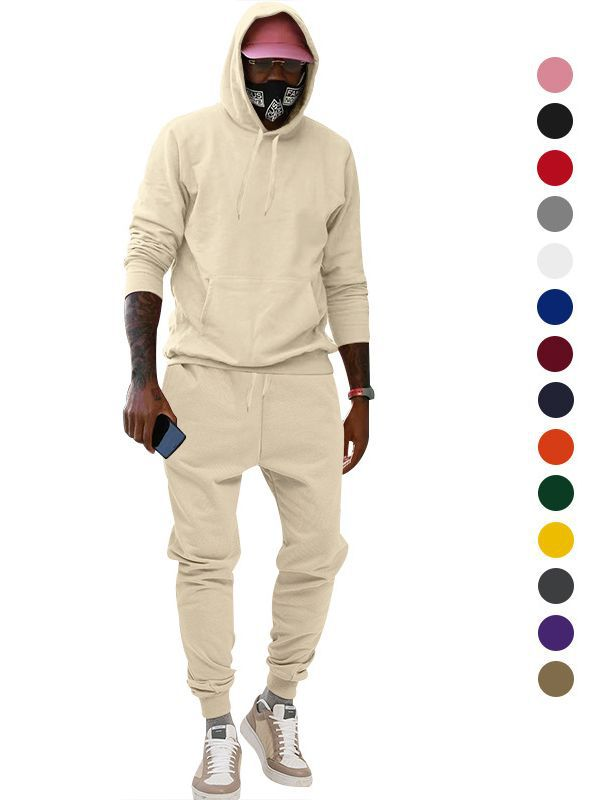 2023 European size hooded plush sweater suit sportscasual solid two-piece men's loose Sportswear