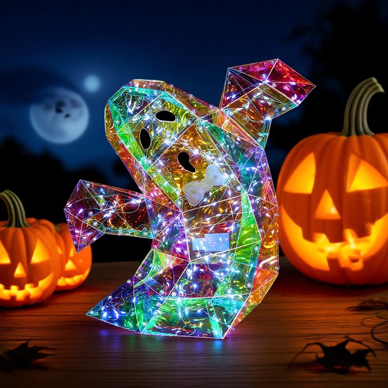 Creative Halloween Cute Ghost Colorful Ornament 40cm Left-Bending Little Ghost Decorative Atmosphere Night Light Ornament