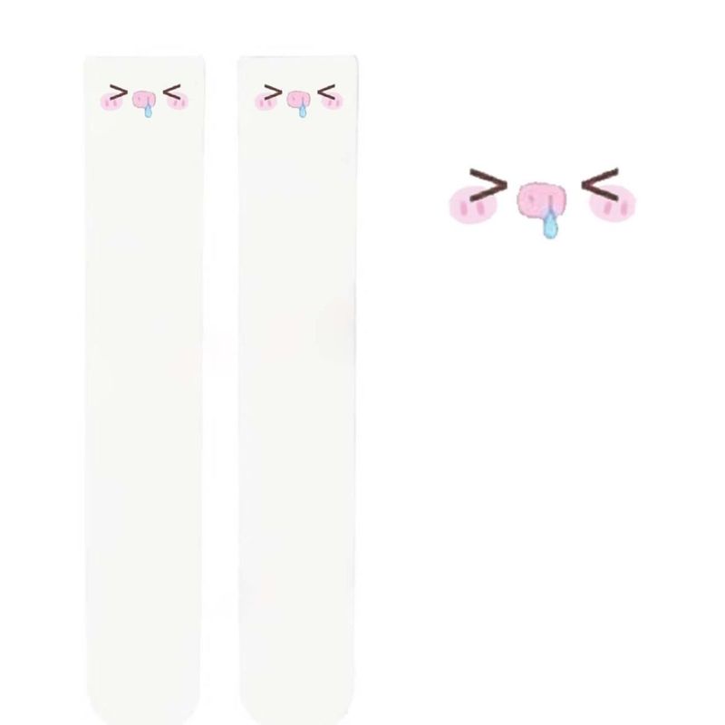 Cute Emoji Print Subculture Over-the-Knee Socks Pure Desire Anime Expression Long High Tube White Stockings