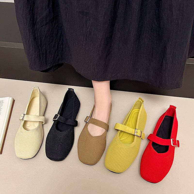 Daily Comfortable, Simple And Classic Solid-color Flat Knitted Shoes For Women