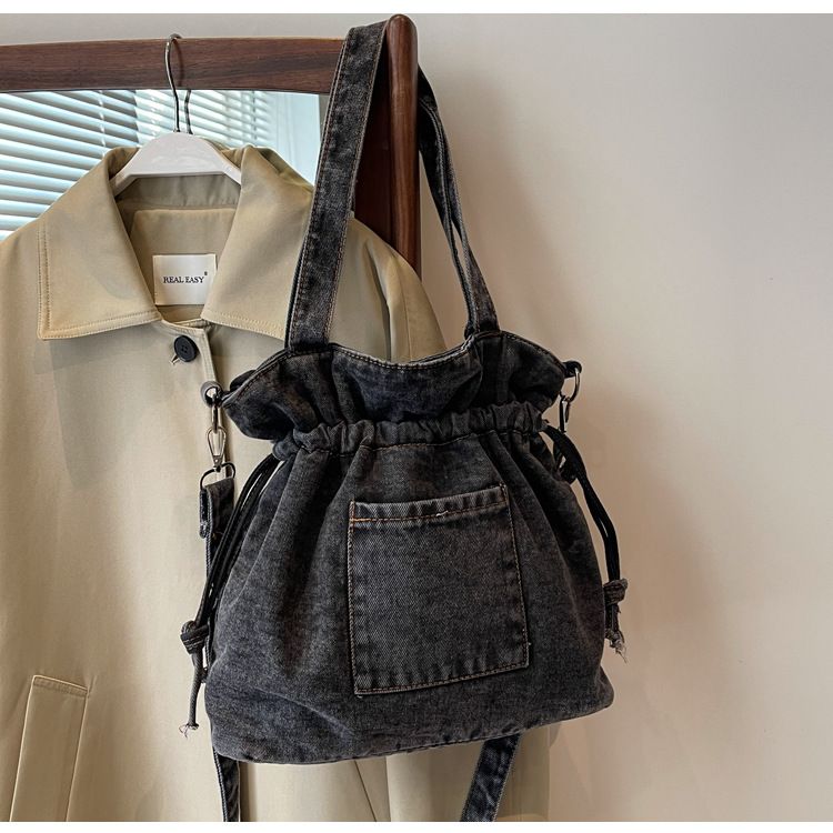 Denim Bag for Women 2025 New Summer Crossbody Large Capacity Bucket Bag Student Drawstring Versatile Shoulder Bag
