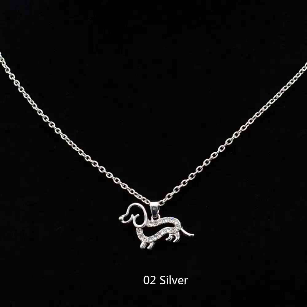 Drăguț mic cățeluș câine pandantiv colier aur argint culoare cristal Dachshund Choker guler lanț colier femeie fată bijuterii cadou