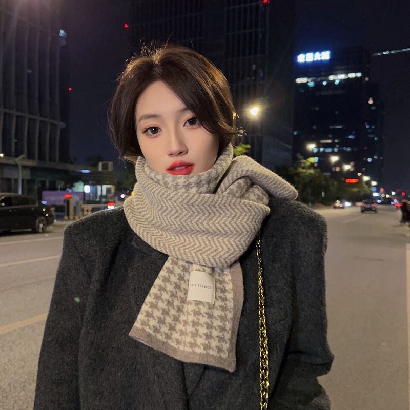 Thousand Bird Grid Knitted Scarf Women's Autumn and Winter Korean Edition Warm and Thick Student Couple Neck Protection Versatile