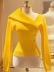 Elegant Asymmetric Collar Knit Sweater For Women - Slim Fit Button Detail Long Sleeve Pullover Top