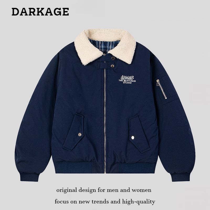 Embroidered Lamb Wool Lapel Jacket Winter Cotton Coat Reversible New American Style Unisex Warm Cardigan