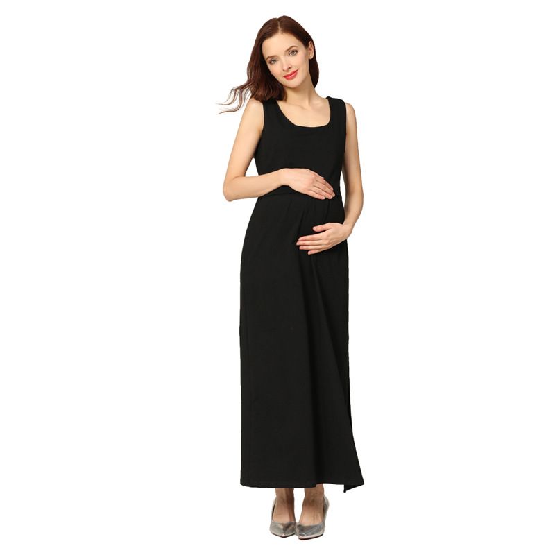 Emotionmom Moda Alăptare și stil elegant Femei însărcinate fără mâneci rochie lungă în dungi Deschidere invizibilă