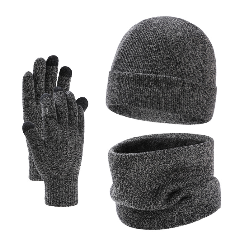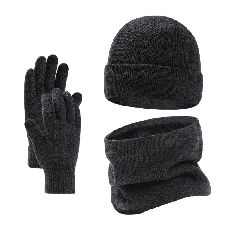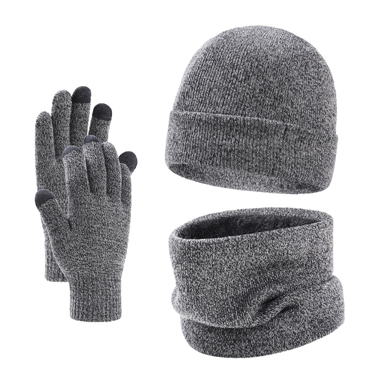 European and American winter hat scarf gloves three-piece men's knitted hat velvet winter wool hat scarf