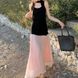Item Number:7560,Pattern:3D effect,Trendy Elements:Appliqué,Craftsmanship:Collage/Assembly,Year/Season of Release:2025 Summer,Fabric Name:Polyester,Main fabric composition:Polyester Fiber,Brand:Smooth sailing,Color:Black top, light pink skirt, black top without halter neck + light pink skirt,Size:S,M,L,XL,Style Type:Japanese and Korean Style Casual,Main fabric ingredient content:Below 30new,Style:Korean Style,Set Style:Skirted Outfit,Applicable Gender:Female,Sleeve Style:Regular Sleeve,Sleeve Length:Sleeveless,Is it cross-border sourcing?:No,Product Category:Casual Outfit