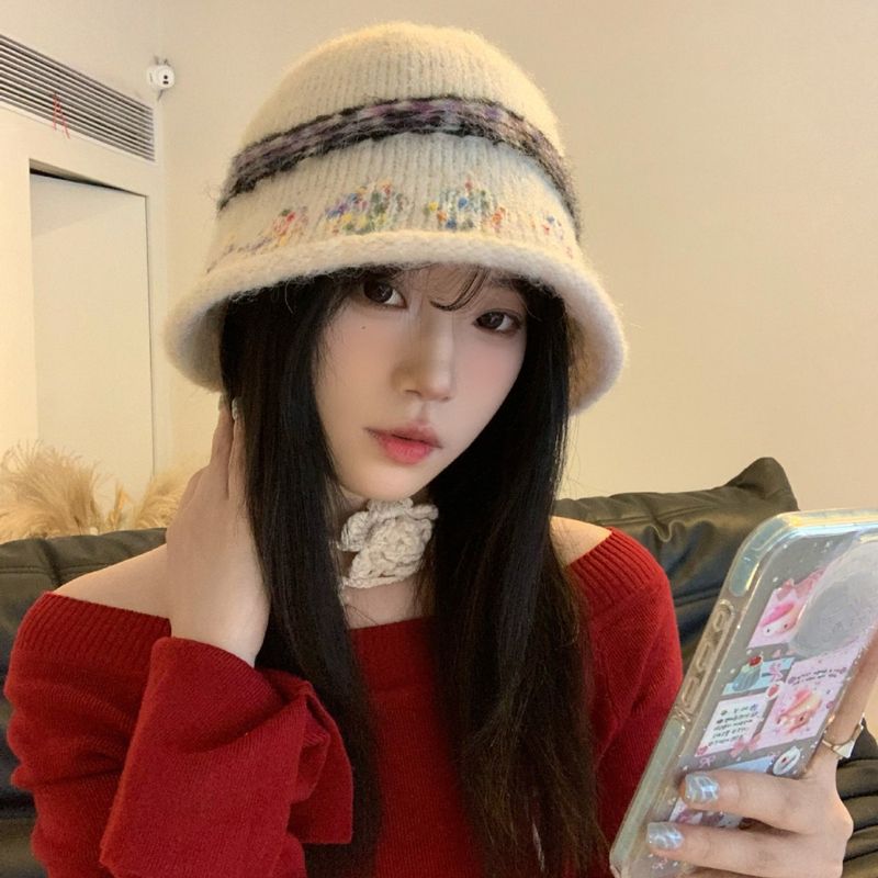 Fall/Winter 2025 New Ruffled Knit Beanie Women's Bucket Hat Stylish And Versatile