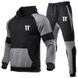 Fashionable autumn and winter new spliced fleece men's hoodie set, trendy brand printed sports hooded set