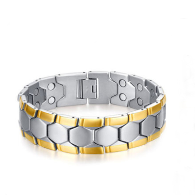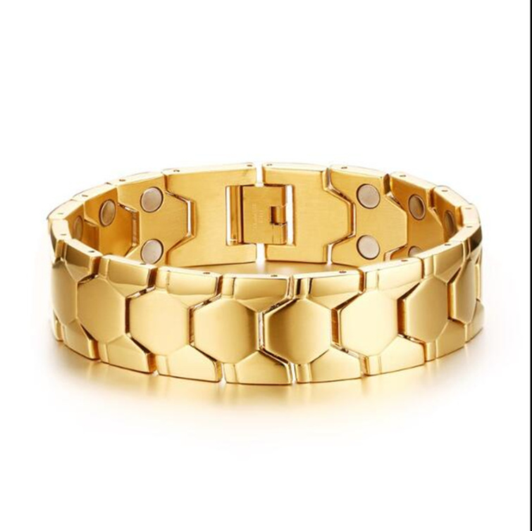 Brățară magnetoterapie la modă, armură personalizată și versatilă, curea placată cu aur magnetit, oțel titan