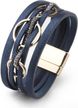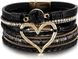 Fesciory Leopard Bracelet For Women, Boho Leather Wrap Multi-Layer Pearl Crystal Bracelet Bangle Jewelry