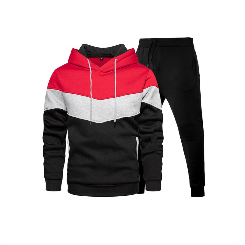 Foreign Trade Men's Sports Suit Fashionable And Casual Spring And Autumn Three-color Splicing Hooded Sweater Trousers Suit