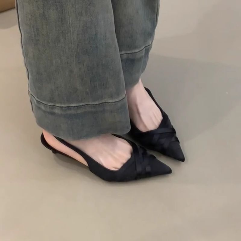 French Elegant Cat Closed Mouth Sandals Women's With Back Strap, Shallow Mouth, Pointed Toe, Single Shoes