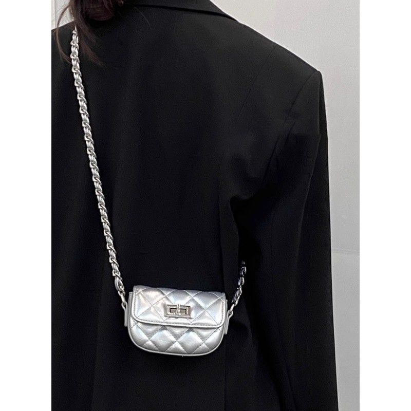 Super hot silver mini bag for women 2024 new item, small fragrance, light luxury, niche design, summer crossbody bag