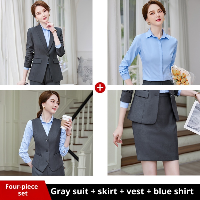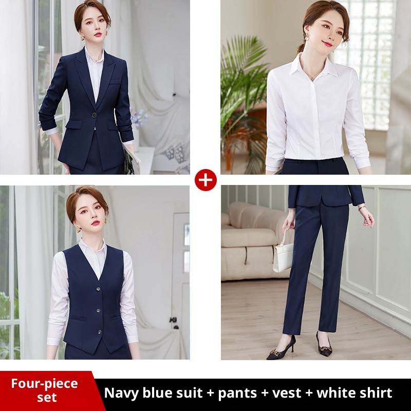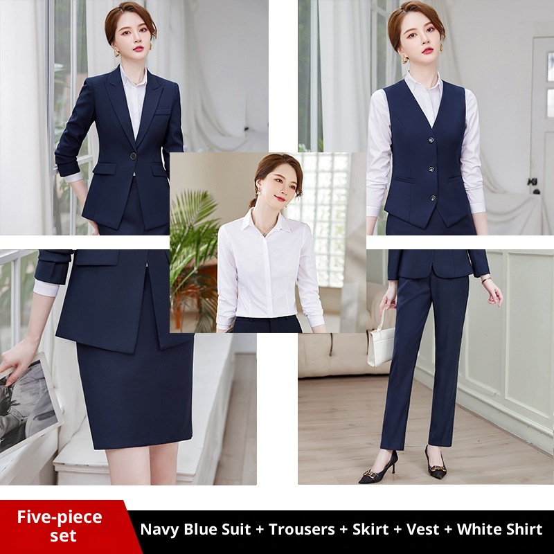 Item Number:MKY 812,Fabric Name:Polyester,Main fabric material composition 2:Spandex,Year/Season of Release:Autumn 2023,Main fabric composition:Polyester Fiber,Color:Royal Blue Suit, Navy Blue Suit, Black Suit, Gray Suit, Royal Blue Suit + Pants, Navy Blue Suit + Pants, Black Suit + Pants, Gray Suit + Pants, Royal Blue Suit + Skirt, Navy Blue Suit + Skirt, Black Suit + Skirt, Gray Suit + Skirt, Royal Blue Suit + Pants + White Shirt, Navy Blue Suit + Pants + White Shirt, Black Suit + Pants + White Shirt, Gray Suit + Pants + Blue Shirt, Royal Blue Suit + Skirt + White Shirt, Navy Blue Suit + Skirt + White Shirt, Black Suit + Skirt + White Shirt, Gray Suit + Skirt + Blue Shirt, Royal Blue Suit + Skirt + White Shirt, Navy Blue Suit + Skirt + White Shirt, Black Suit + Skirt + White Shirt, Gray Suit + Skirt + Blue Shirt, Royal Blue Suit + Skirt + White Shirt, Navy Blue Suit + Skirt + White Shirt, Black Suit + Skirt + White Shirt, Gray Suit + Skirt + Blue Shirt, Royal Blue Suit + Skirt + White Shirt, Navy Blue Suit + Skirt + White Shirt + Vest, Black Suit + Skirt + Vest, Gray Suit + Skirt + Vest, Royal Blue Suit + Pants + Skirt + White Shirt, Navy Blue Suit + Pants + Skirt + White Shirt, Black Suit + Pants + Skirt + White Shirt, Gray Suit + Pants + Skirt + Blue Shirt, Royal Blue Suit + Pants + Vest + White Shirt, Navy Blue Suit + Pants + Vest + White Shirt, Black Suit + Pants + Vest + White Shirt, Gray Suit + Pants + Vest + Blue Shirt, Royal Blue Suit + Pants + Skirt + Vest, Navy Blue Suit + Pants + Skirt + Vest, Black Suit + Pants + Vest + White Shirt, Gray Suit + Pants + Vest + Blue Shirt, Royal Blue Suit + Skirt + Vest + White Shirt, Navy Blue Suit + Skirt + Vest + White Shirt, Black Suit + Skirt + Vest + White Shirt, GrayColor suit + skirt + vest + blue shirt, royal blue suit + pants + skirt + vest + white shirt, navy blue suit + pants + skirt + vest + white shirt, black suit + pants + skirt + vest + white shirt, gray suit + pants + skirt + vest + blue shirt,Size:S,M,L,XL,XXL,XXXL,XXXXL,Brand:other,The length of the pants:Long Pants,Sleeve Length:Long Sleeve,Main fabric ingredient content:95% and above,Sleeve Style:Regular Sleeve,Is it cross-border sourcing?:No,Main fabric component 2 content:Below 30%