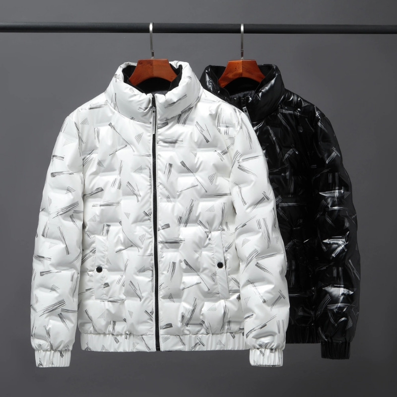 Glossy Cold-Proof Jacket For Men, Short Style, 2022 New Stand Collar Printed Lightweight Student Couple Trendy Winter