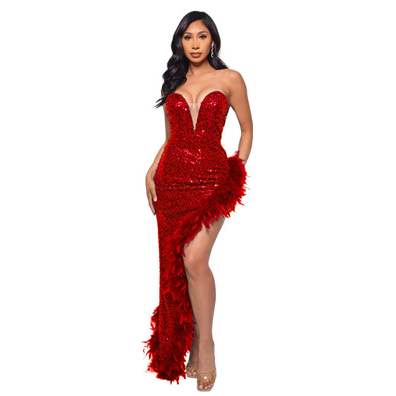 GraceChic Ins European And American Cross-Border Women's Fashion Independent Station Strapless Backless Sequin