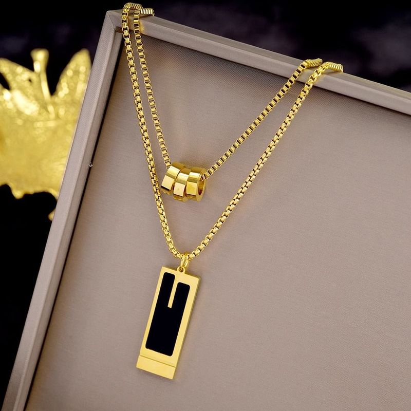 [Unshipped Instant Refund] High-End New Sweater Chain Titanium Steel Non-Fading Double Layer Square Necklace Women's Fashion Accessories