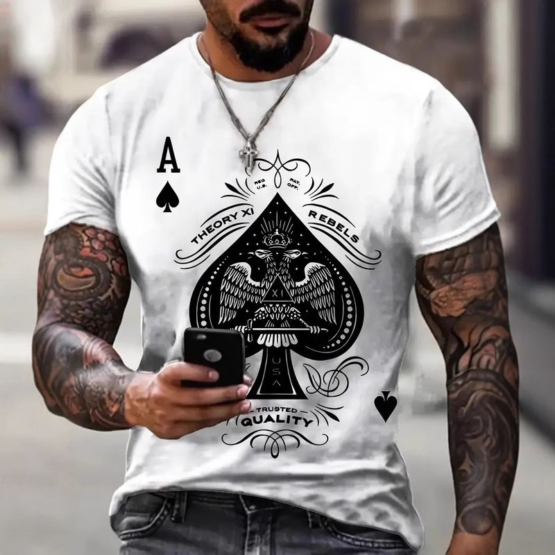High Street Elements Playing Cards 3D Digital Print 2024 Fashion Versatile Regular Shoulder Loose Round Neck Short Sleeve Men's T-Shirt