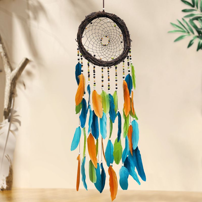 Indian Rattan Dream Catcher Hanging Ornament DIY Handmade Woven Pastoral Retro Colorful Pendant Export Finished Product