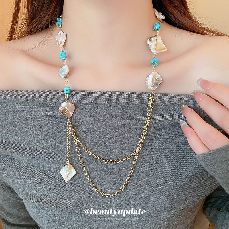 Irregular Pebble Square Shell Bohemian Beach Vacation Style Collarbone Chain Fashion Versatile Women's Necklace