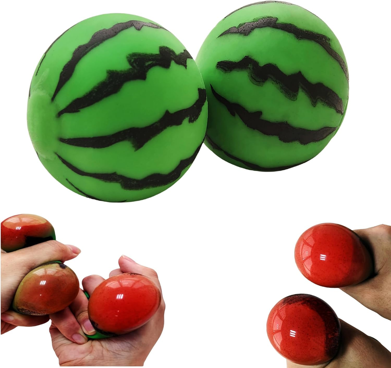 【DURABLE MATERIALS】- Our fidget toy stress balls are made of high quality soft rubber and TPR, non-toxic and safe to use. With a super tactile feel, it won't break or deform even when squeezed hard. 【Anxiety Relief Toys】- The perfect way to relieve stress; these squeeze fruit balls keep your brain focused and your hands busy, just squeeze, squeeze and stretch these bead balls to effectively help you relieve stress, anxiety and tension . 【LIGHT & PORTABLE】- The small size is easy to carry, can be placed around the house, kid's bedroom, living room, office, can be taken to school or when traveling. Carry it anywhere in your bag. It can be shared among siblings, friends and colleagues. 【FUN AND NEW SHAPE】- Designed in the shape of strawberry and watermelon,and the color of strawberries will change according to different light. It is fun and attractive; it is a great calming tool for children and teens with autism, ADD and ADHD. 【Gifts for All Ages and Occasions】- These stress relief balls help relieve stress and anxiety in children and adults. Ideal gift for kids and adults; share a fun party time with your family.
