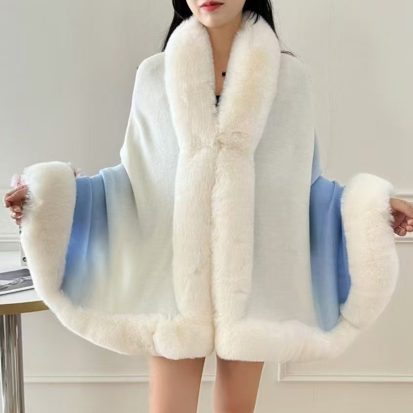 Knitted Wool Collar Cardigan Coat Women's Fashionable High-end Top Autumn and Winter Coat Sweater Shawl Scarf