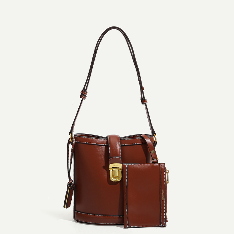 Korean Joyosoi Bucket Car Jingyuan Same New Cowhide Shoulder Bag Genuine Leather Crossbody Mother Bag Women's Bag