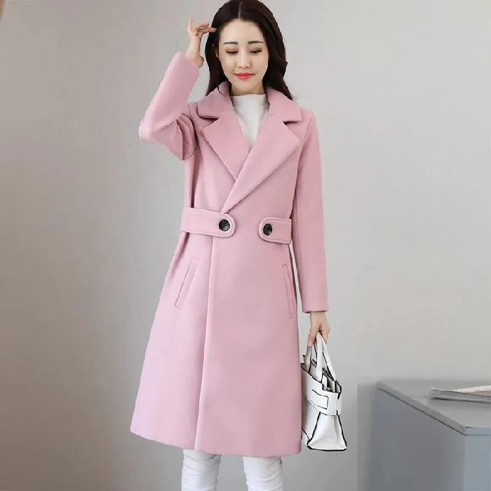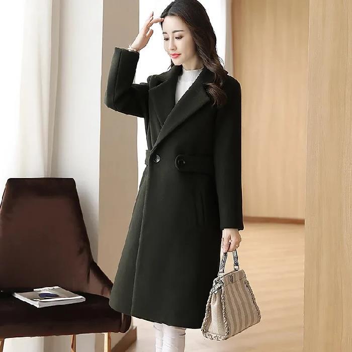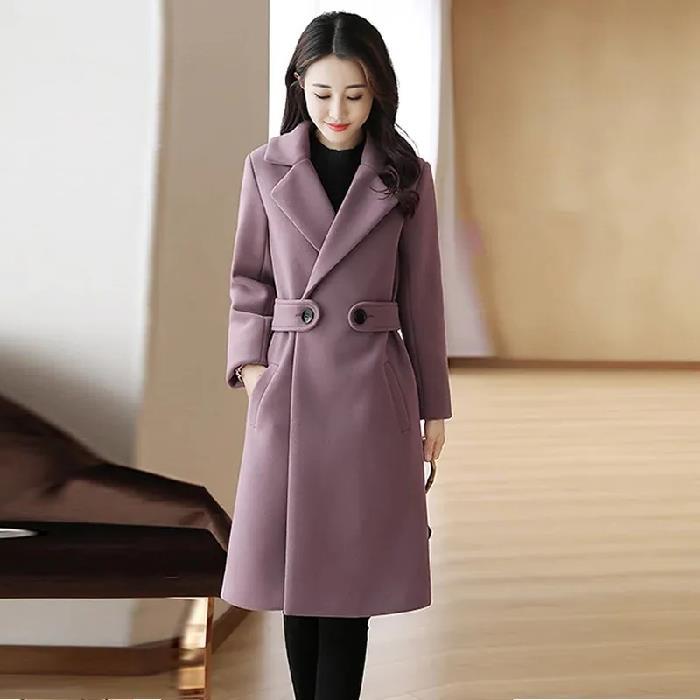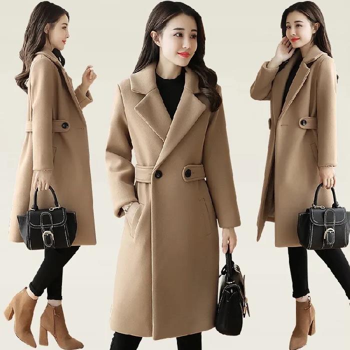 Jachetă de lână în stil coreean pentru femei, lungime medie, 2023, toamnă și iarnă, îmbrăcăminte pentru femei, slim-fit, palton de lână subțire