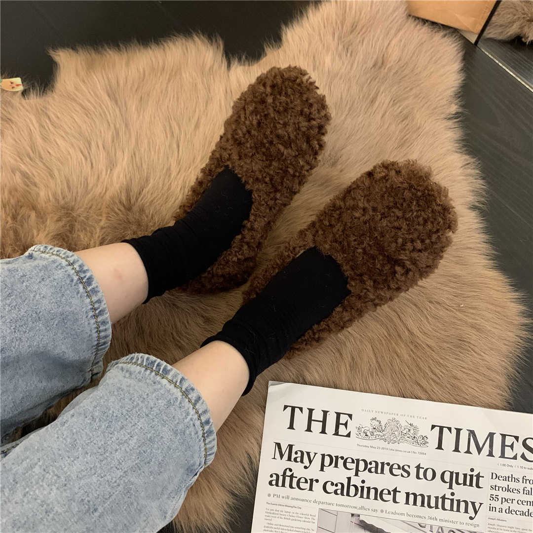 Warm plush shoes for women with a shallow cut and simple winter wear. 2023 Autumn and Winter New Lamb Plush Thick Sole and Plush Single Shoes