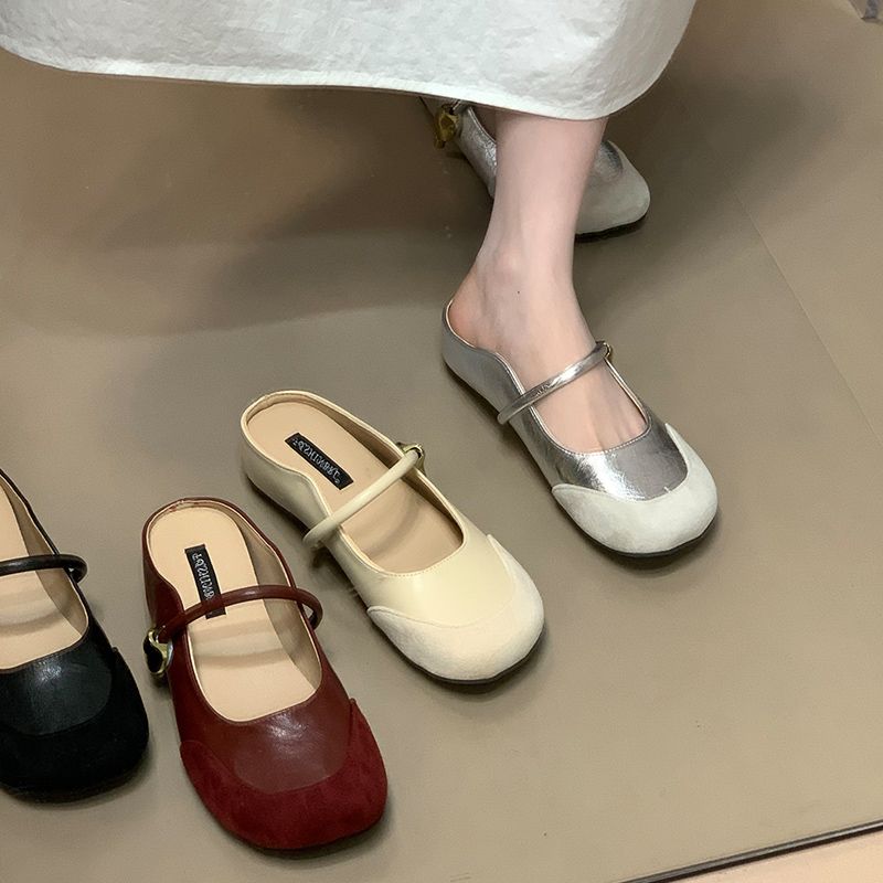 Lancui French Ballet Gentle Patchwork Closed-Toe Mules Summer Outdoor 2025 New Style Hidden Heel Single Shoes For Women