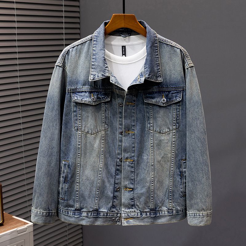 Large Size Men's Clothing Factory Autumn And Winter New Denim Jacket Men American Retro High Street Ruffian Handsome Denim Jacket Men