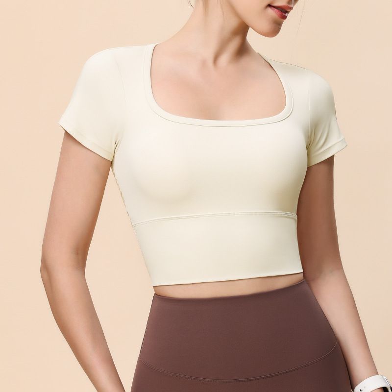 LazyZoom New Simple Roud Neck Sports Yoga Short Sleeve Beautiful Back Mesh Moisture-Wickig T-Shirt Ruig Fitess Top For