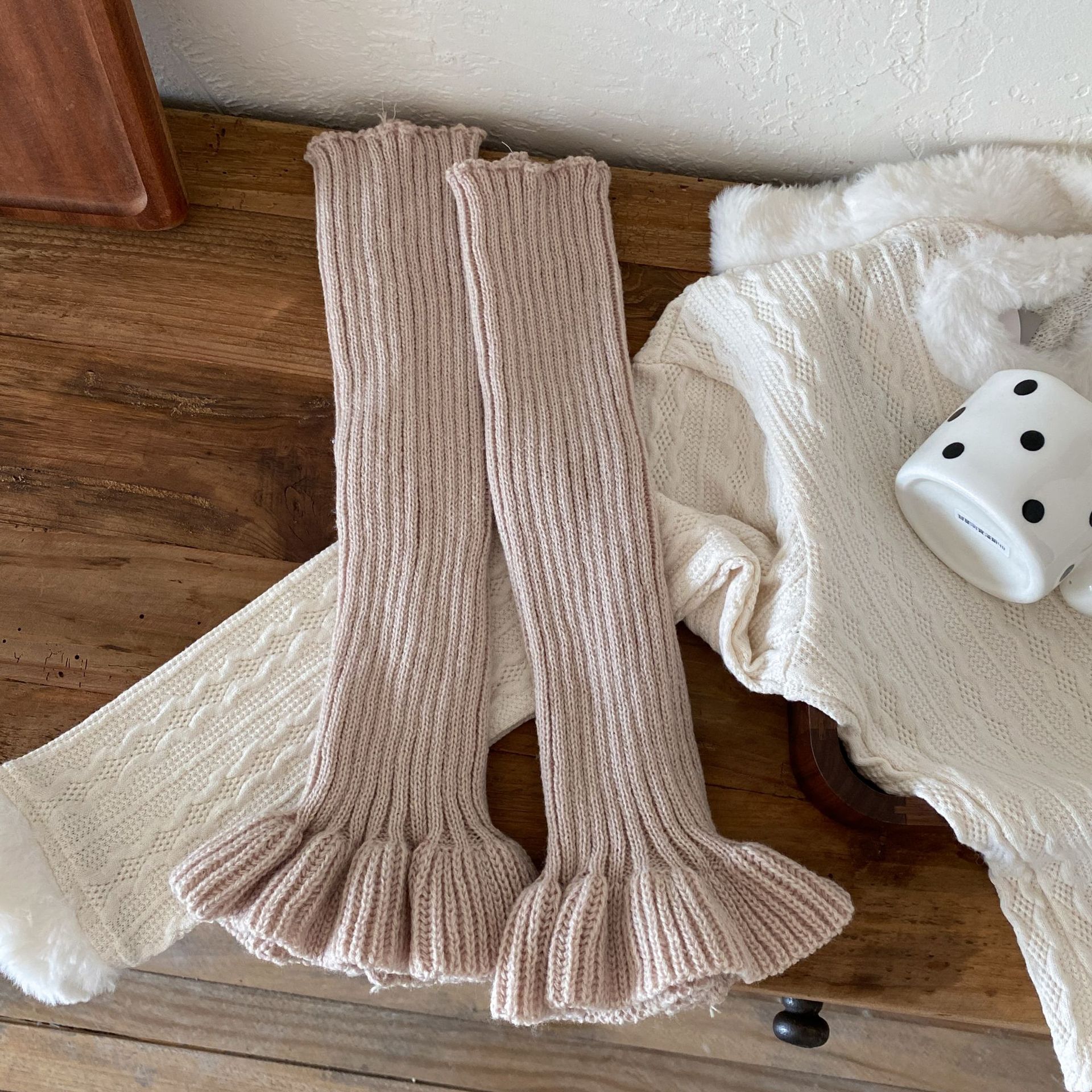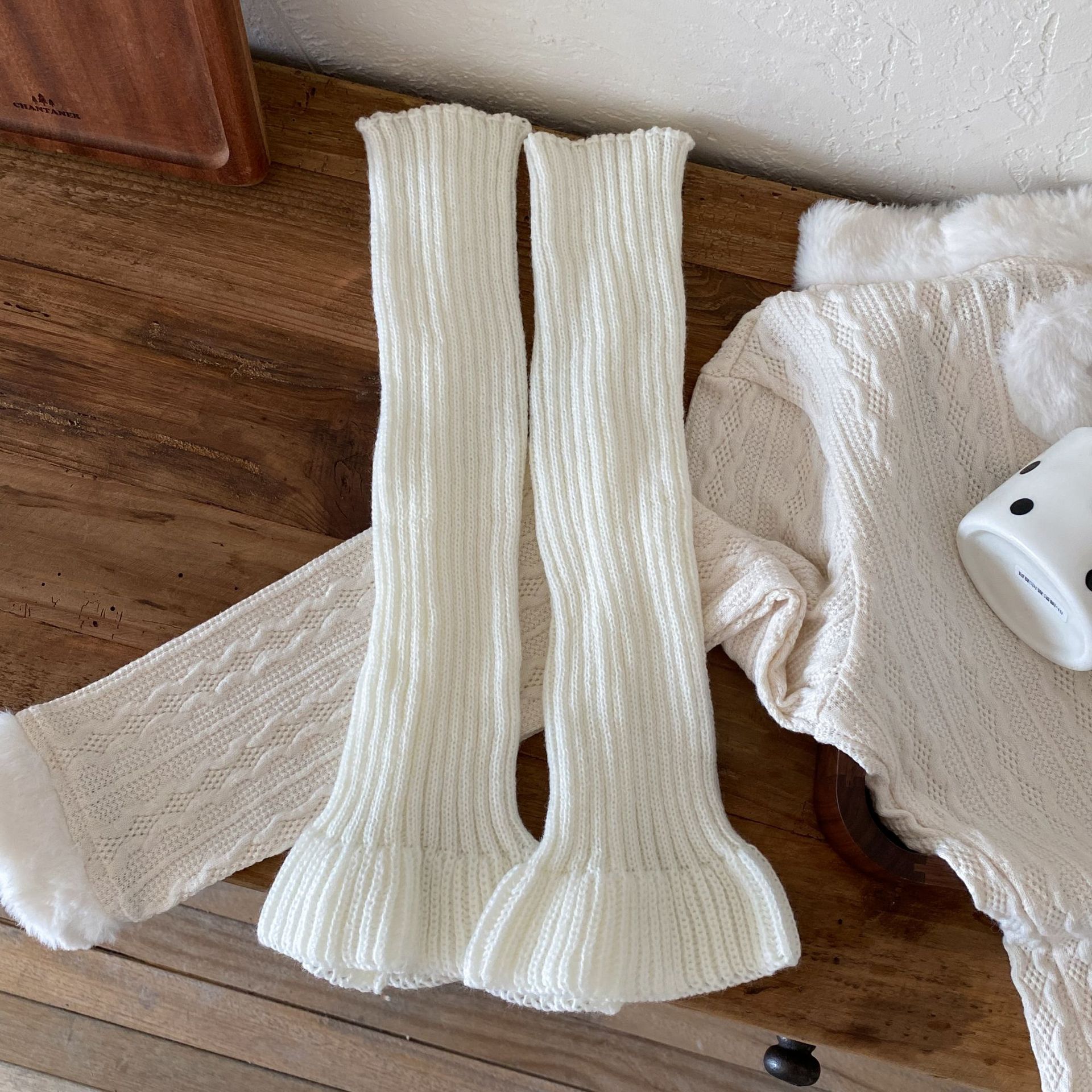 Leg Warmers Cotton Socks Autumn And Winter Solid Color Stacked Socks Vertical Striped Knitted Trumpet Ballet Style Thickened Wool Calf Leg Covers