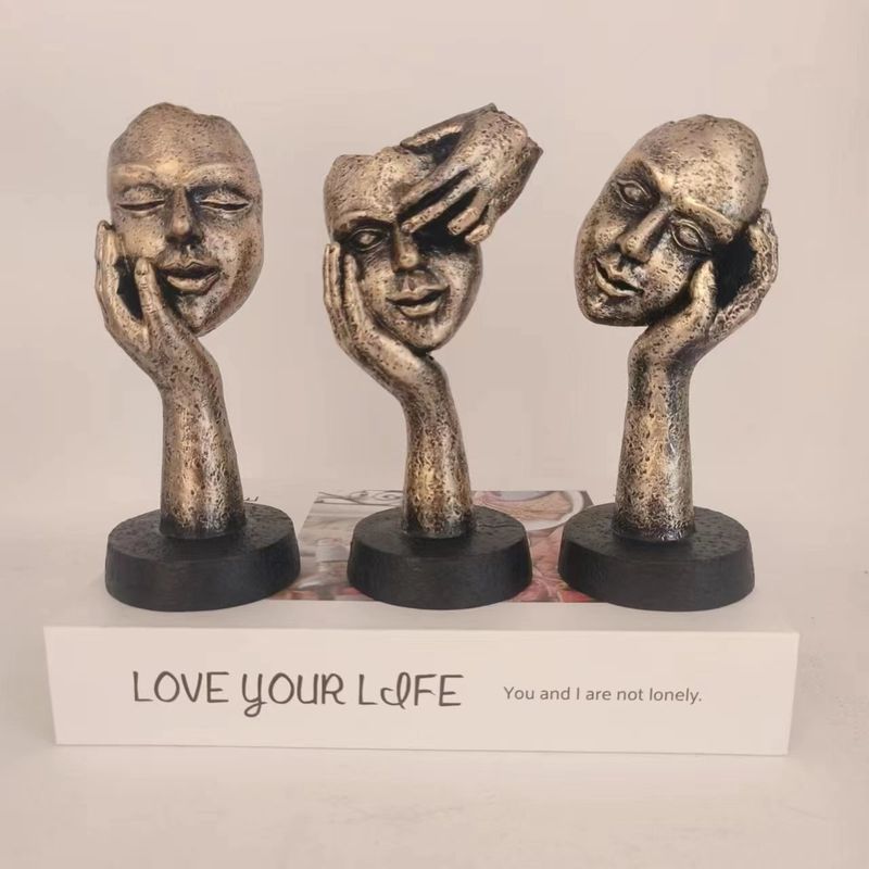 Light Luxury Creative Abstract Figure Non-listening Non-Seeing Entrance Tabletop Ornament Office Wine Cabinet Bookshelf Decoration Ornament