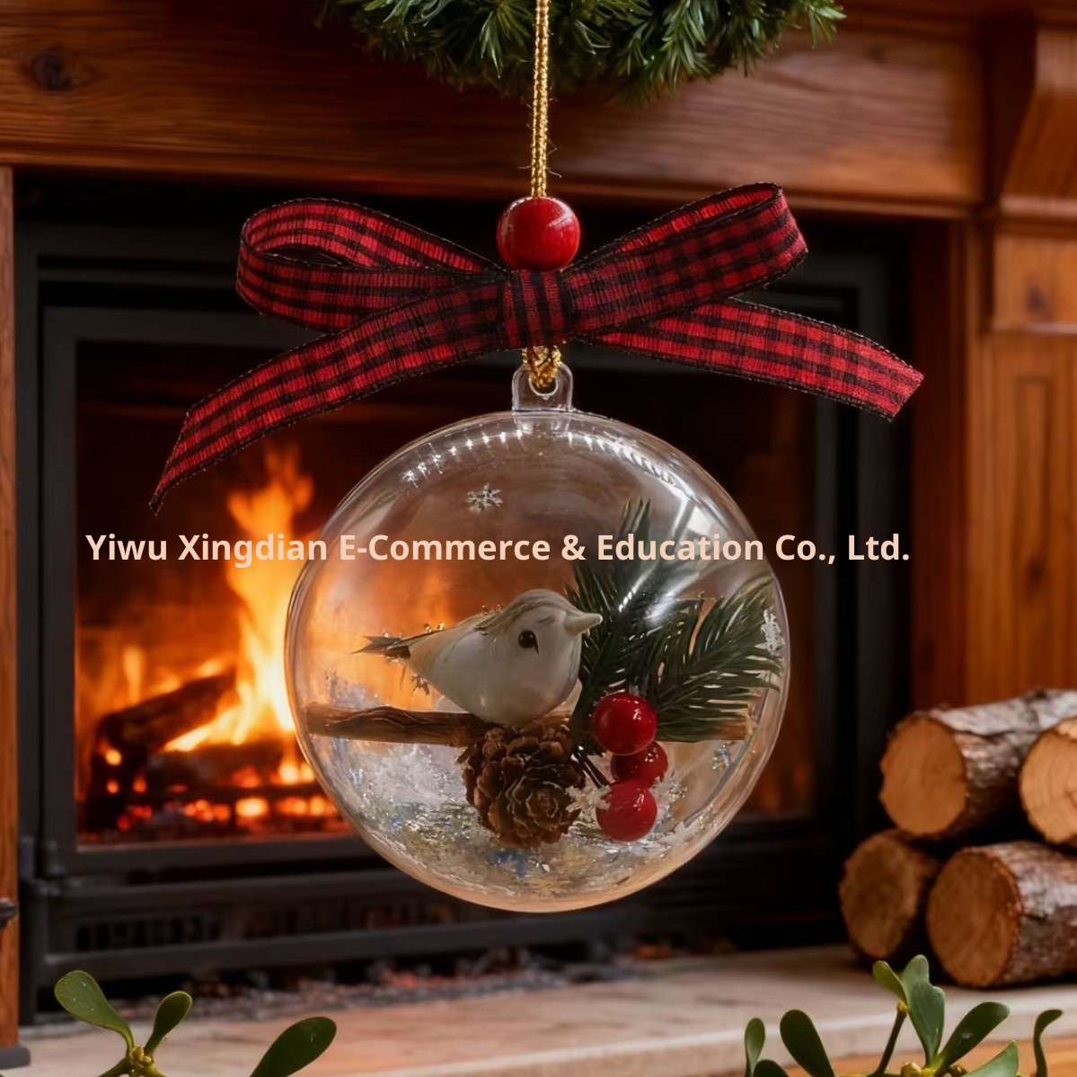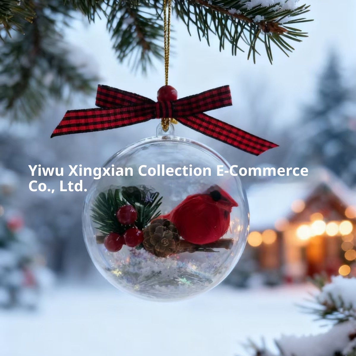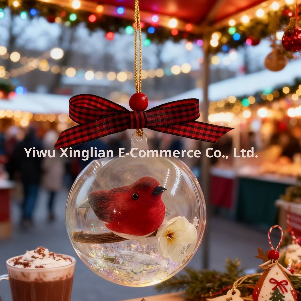 Lillian Cross-Border Tree Ornaments Transparent 3D Red Simulation Robin Bird Decoration Ball Christmas