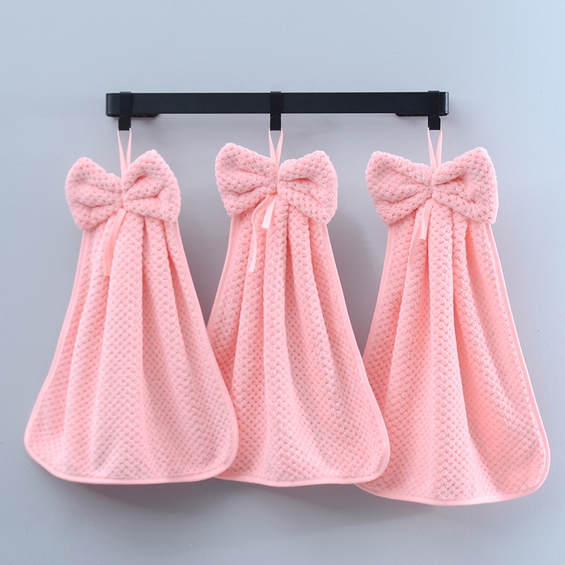 Lillian Pineapple Grid Coral Fleece Thickened Absorbent Hanging Bathroom Kitchen Hand Towel Non-Shedding Soft