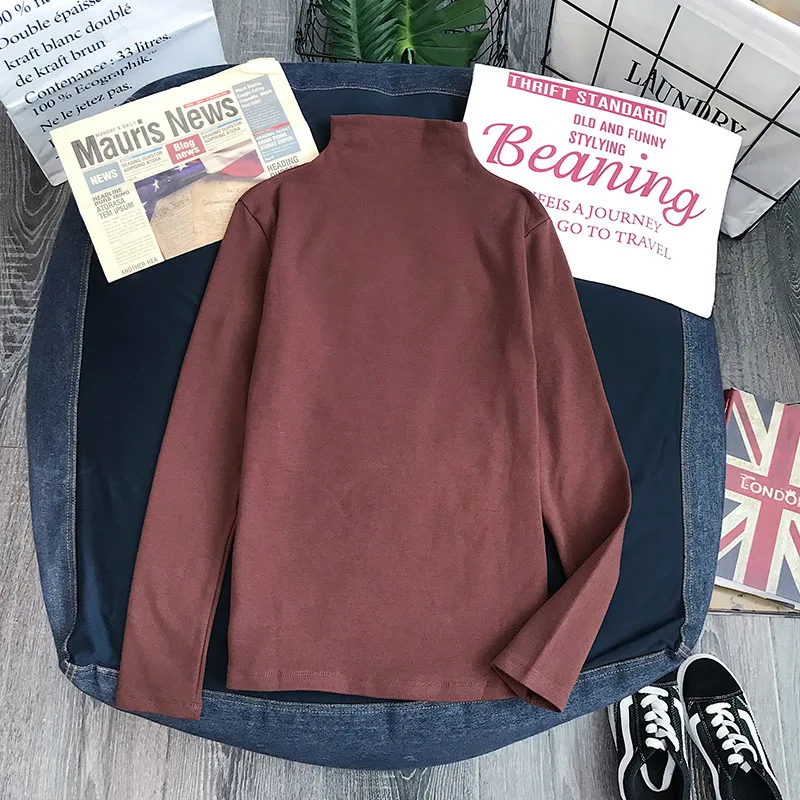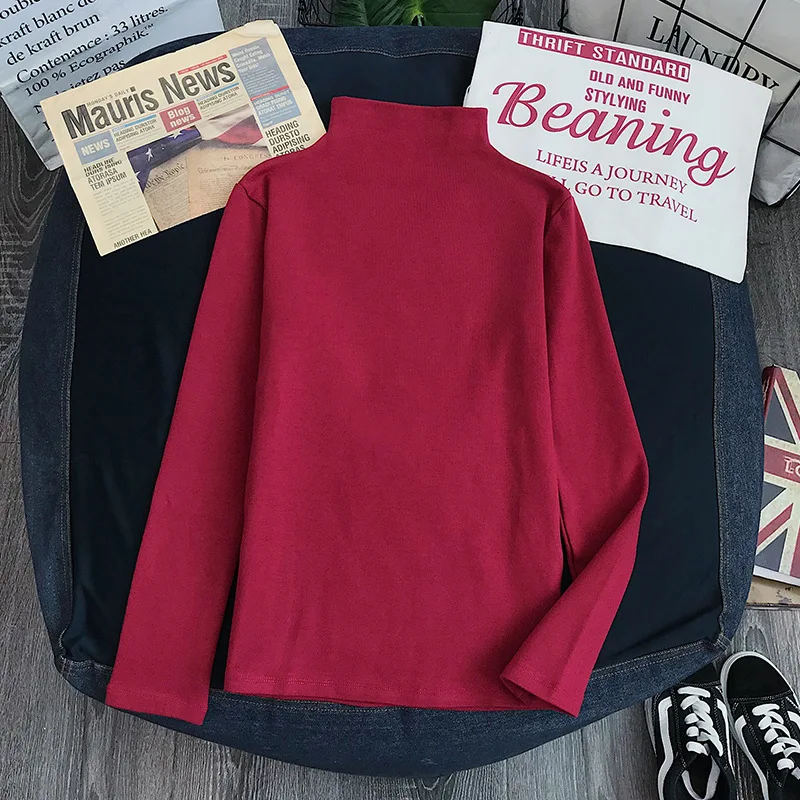 Tricou cu mânecă lungă pentru femei, lenjerie intimă de bază, guler înalt, tricouri pentru femei, casual, bază solidă, tricou, maieu, topuri, negru846