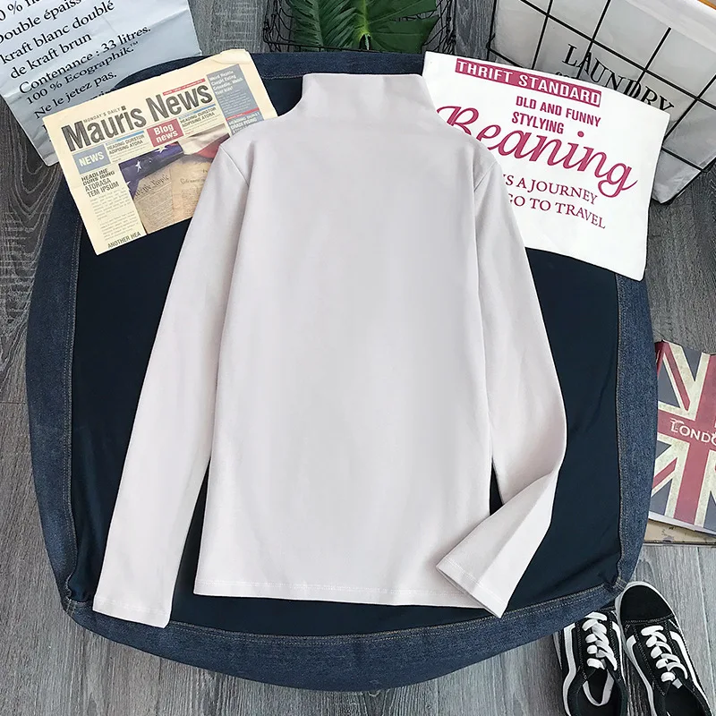 Long Sleeve Women T-Shirt Underwear Basic Turtleneck T-Shirts Lady Causal Base Solid Tee Tshirt Undershirt Tops Black White
