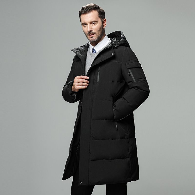 Long Men's Down Jacket Thickened Plus Size Men's Coat Hooded High-End White Duck Down Jacket Dad Men's Clothing