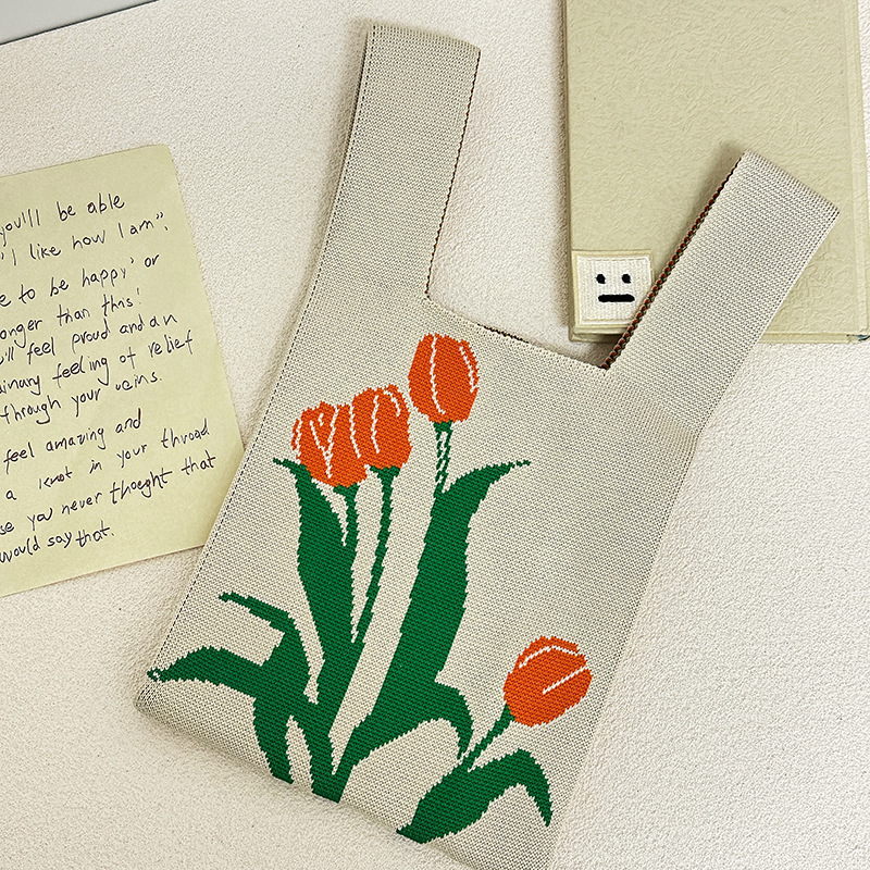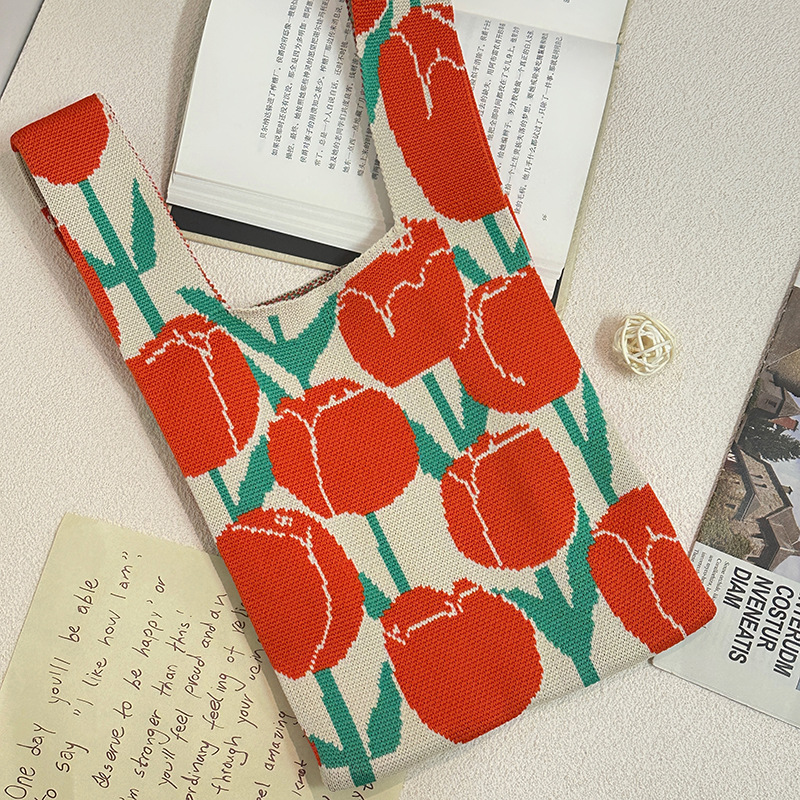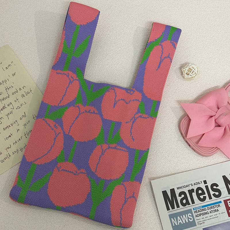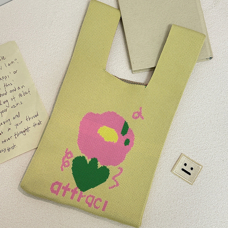 Luochi Knit~Korean niche design knit sweet fashionable flower bag, casual and versatile strolling handbag