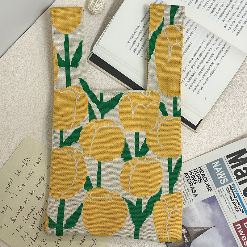 Luochi Knit~Korean niche design knit bag, sweet and fashionable flower bag, casual and versatile strolling handbag