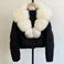 Brave the cold in style with our premium short down jacket, designed to keep you cozy without sacrificing sophistication. The luxurious detachable fox fur collar adds a touch of glamour, while the 51%-55% white duck down filling ensures lightweight warmth for chilly days.
