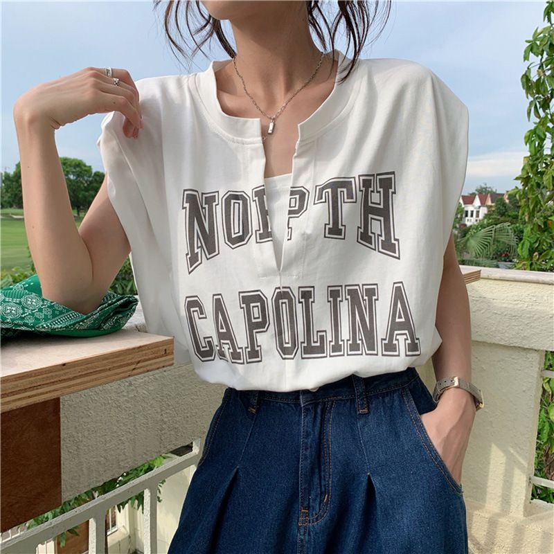 Women's Summer Outwear Short 2021 New Fake Two Piece Loose Sleeveless T-shirt Tank Top Design Feels Good for Clothing