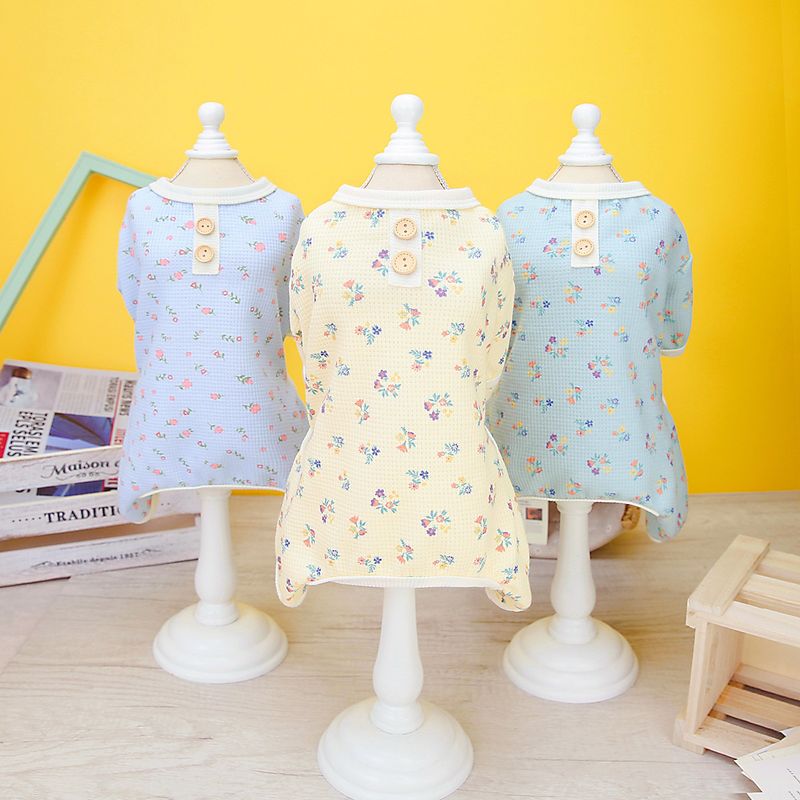 Îmbrăcăminte pentru animale de companie, haine cu patru picioare, haine pentru câini de primăvară și vară 23, haine de casă cu imprimeu floral tip waffle grid